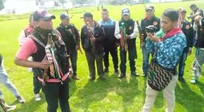 El grupo los iankovers de Bogotá hace homenaje a las guardias indígenas en el cancha acústica en la universidad nacional de Colombia Bogotá.